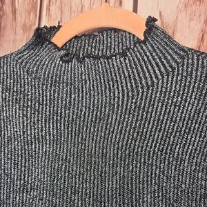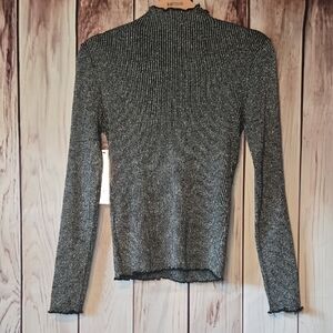 Almost Famous Silver Metallic Black Ribbed Mock Neck Sweater Size Large