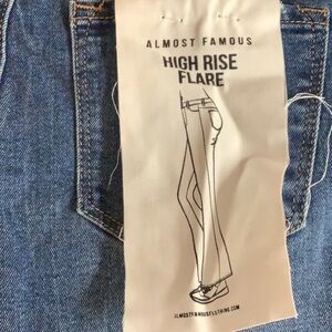 Chic denim flares. Versatile and trendy. Ideal for casual wear. Almost Famous Size 0 Denim High Rise Flare Jeans. New With Tags.