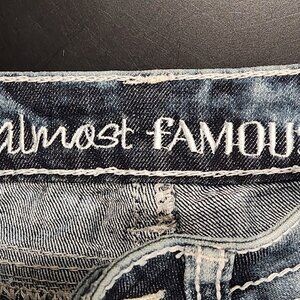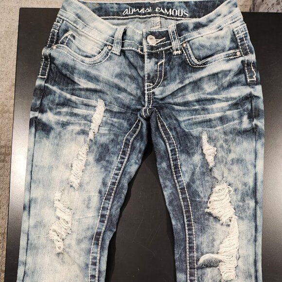 Stay stylish and comfortable in these Almost Famous jeans! These trendy jeans feature a flattering mid rise skinny fit and distressed detailing for a cool, edgy look. Perfect for casual outings or a night out with friends. Size 0, in great condition. Don't miss out on adding these versatile jeans to your wardrobe! I am the original owner.