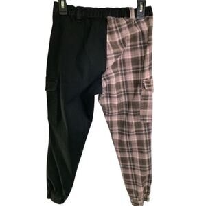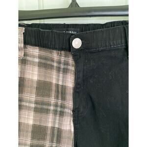 Almost Famous Size Medium Plaid and Solid Pant Jogger Legs Black