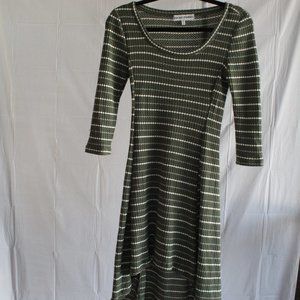 Fitted sweater dress with a subtle high-low hem. Used; good condition.