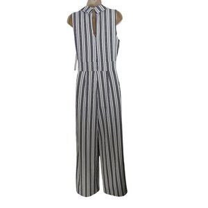 Almost Famous Striped Sleeveless Jumpsuit Women Size L Pearl Button Wide Leg NEW