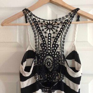 Almost Famous Sz Small Poly Rayon Linen Jail Striped Midi Summer Dress Crochet