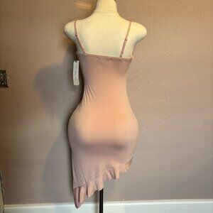 Almost Famous Tan Pink Asymmetrical Bodycon Dress