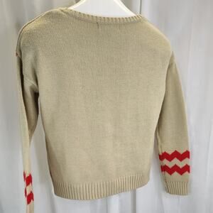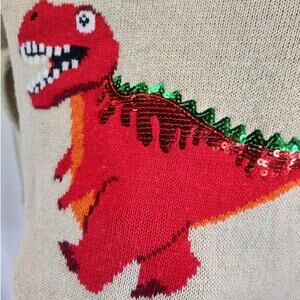 Comments: Fun dinosaur v-neck sweater. Love the zig zags on the sleeves and the highlights of sequins on the dino.
