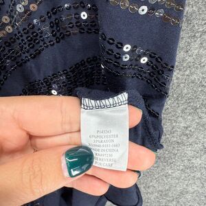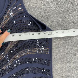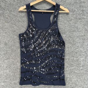 Almost Famous Tank Women L Large Blue Striped Sequin Sleeveless Racerback Rayon