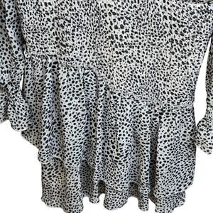 Almost Famous Tiered Sheer Ruffle Leopard Print Long Sleeve Dress Women 8
