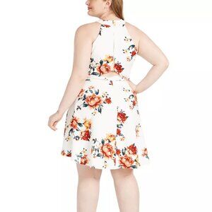 Pretty florals bloom on this Almost Famous plus size dress, which is styled with a chic halter neckline and a high-low hem for flattering coverage.