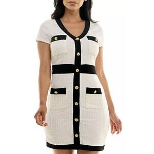 Almost Famous Tweed Button-Front Dress Womens Juniors White Size Small🌻NEW🌻