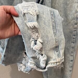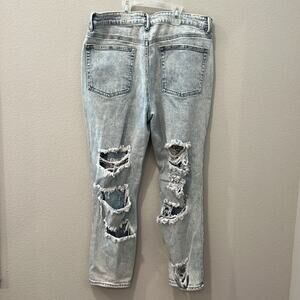 Light wash denim with distressing down front and back. Perfect grunge look. Straight leg, boyfriend fit. Size 13