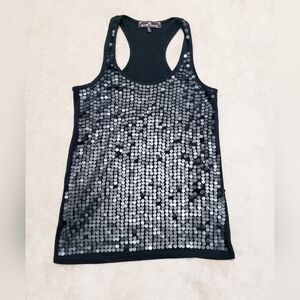 Almost Famous Womans Size M Black Racerback Tank top Sequin Sparkly Embellished