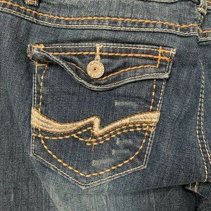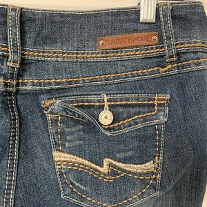 Almost Famous Women Jeans Size 9 Blue Rise 7.5 Boot Cut Zip Up Distressed