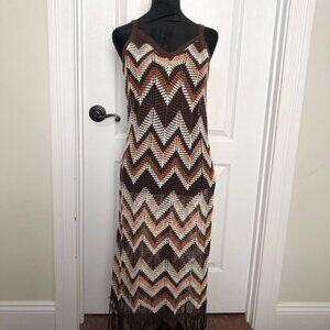 Almost Famous Women's Crochet Dress Large Brown & White Chevron Pattern NWT