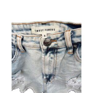 Almost Famous Womens Distressed Denim Mom Shorts Size 5 Light Wash
