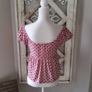 Junior's medium plum purple floral v bar peasant crop top by Almost Famous.