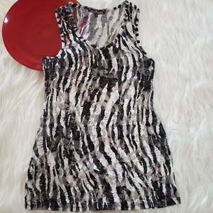 Almost Famous Women's Lace Tank Top Size XL Black White Sheer Floral Pullover