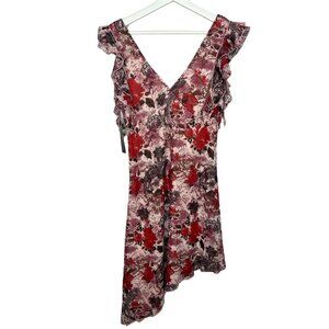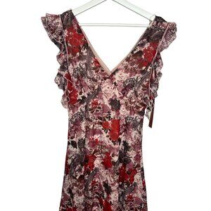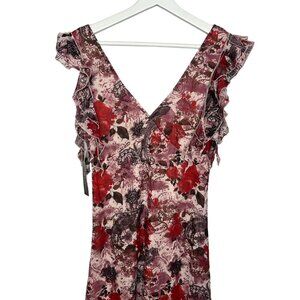 Almost Famous Womens M Pink Red Floral Ruffle V Neck Cottagecore Dress