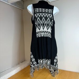 Almost Famous Women's Sz Small Black White Cardigan Tunic