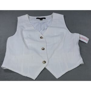 Almost Famous Women’s White Linen Blend Button Front Vest Size M New with Tags