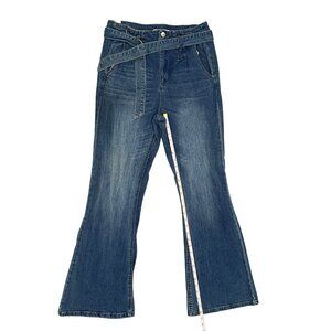 Almost Famous Y2K Juniors Size 11 High Rise Flare Jeans Blue Denim Tie Belt