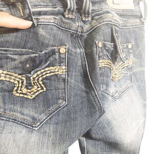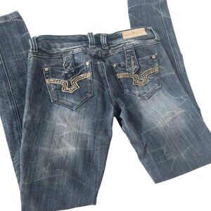 Almost Famous Y2K Low Rise Juniors Size 3 Faded Detail Pocket Dark Denim
