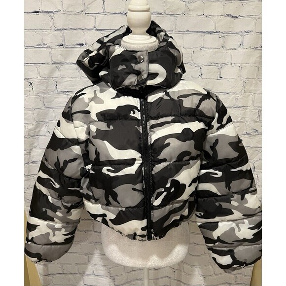 Almost Famous black and white camouflage cropped puffer jacket Size 1X
