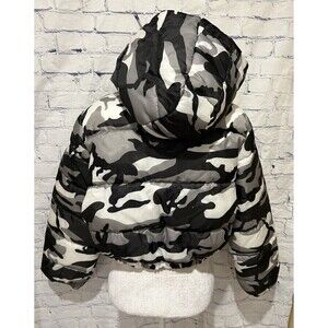 The Almost Famous black and white camouflage cropped puffer jacket in size 1X is a stylish and trendy outerwear option for women. Made from polyester, this short-length jacket features a zip closure, long sleeves, and a hood for added comfort and warmth. The black and white camouflage pattern adds a fashionable touch, while the lightweight and insulated design make it perfect for chilly weather. The plus-size fit ensures a comfortable and flattering silhouette for any woman looking to stay warm and stylish. 23 inches pit to pit and 18 inches long. Smoke free home.