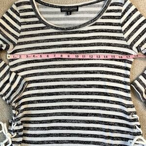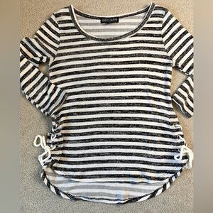Almost Famous boho top blouse Stripe Ties Size Medium Black White. Cute ties on side. Hem is slight high low. 3/4 sleeves.