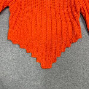 Perfect for autumn weather! Vibrant orange sweater, snug fit, long sleeves, cropped at waist, V configuration at front hemline!