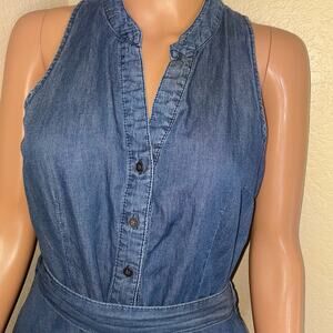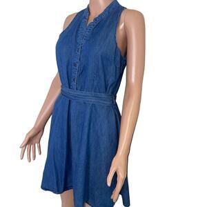 Almost Famous chambray dress 1/4 button up tie waist 100% Cotton SZ MD