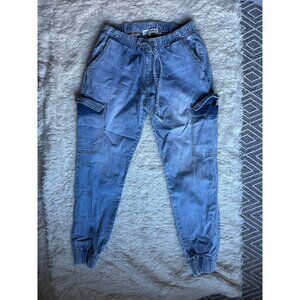 Almost Famous denim joggers with cargo pockets Large Elastic and drawstring waist