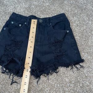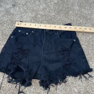 Almost Famous jean shorts denim cutoff raw hem black high waisted SZ 0