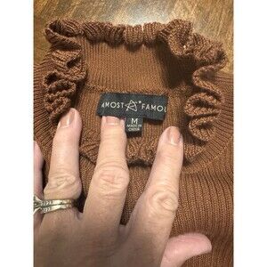 Almost Famous puff gauze sleeve sweater Mock Turtleneck M Bronze