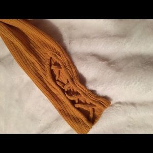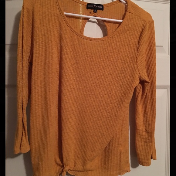 Mustard color, in great condition. Has cross cross details on both sleeves and a tie knot design on bottom of shirt. Youth large or women’s xs