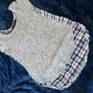 Almost famous top size medium, front is a sweater type material, back is a plaid flannel type that has a lower hem.