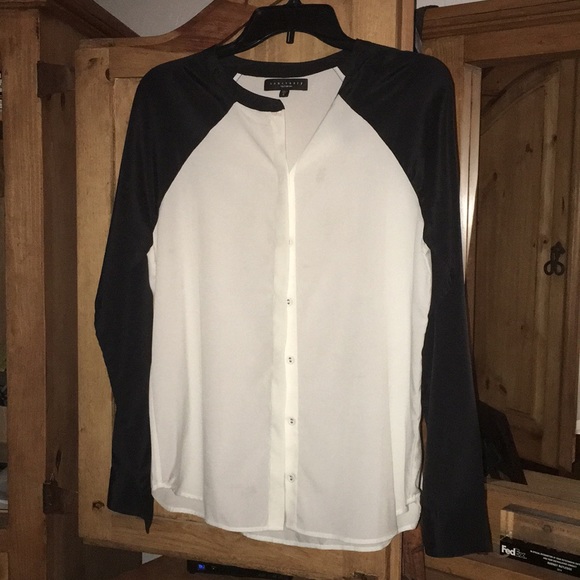White and black sheer blouse