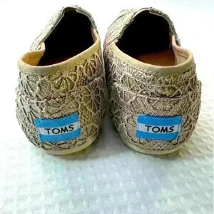 Almost new, (marks on sole are only flaw), Toms sparkly floral slip-on flats, in sz 10. Perfect condition other than some slight marking on soles. Beautiful almond/tan color with goldish/silver sparkles throughout. Daisy 🌼 floral pattern. Gorgeous spring and summer staple to your wardrobe.