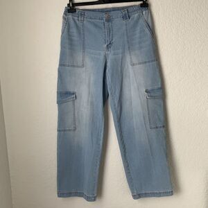 Almost Famous Denim Cargo Relaxed Fit Light Wash Women’s Pants Size L