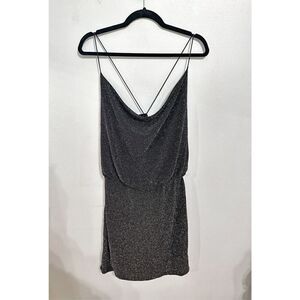 Almost Famous Cocktail Sparkly Dress || size large || excellent condition with no signs of wear || silver/gray and sparkly || mid thigh length || ultra thin spaghetti straps || the whole dress and the straps are stretchy ||