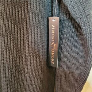 Solid black color, ribbed knitted, distressed, sweater, crew neckline, slit down the middle, soft and comfortable fit. NWT