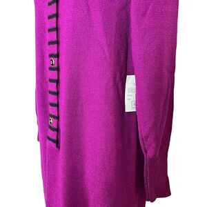 This Alnoral Al Spokavicius Danielle Oliver wool knit dress is a must-have for any fashion-forward woman. The dress features a high neckline with button closure, long sleeves, and an oversized fit. The dress is knee-length and made from a rayon and wool blend, making it perfect for fall, winter, and spring. The dress is in excellent condition, with no signs of wear or tear. The purple color and solid pattern make it perfect for any occasion, especially business events. The dress is dry clean only and was made in the United States. Buy this vintage dress for a unique addition to your wardrobe.