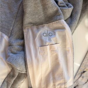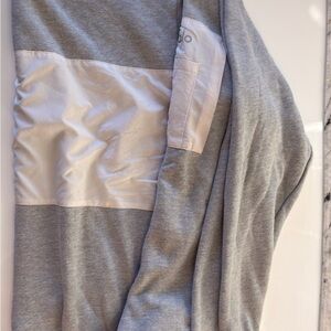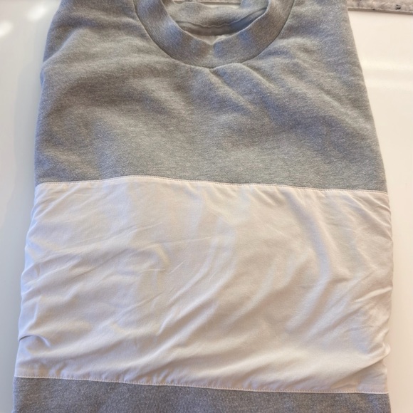 All Yoga sweatshirt. Soft light grey trim and white body panel. Pocket on sleeve. Large.