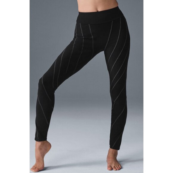 Brand new with tags Alo Yoga "Alosoft High-Waist Sunray Legging" in Black/White, size S. Super booty-flattering v-shaped back seam!