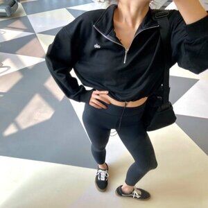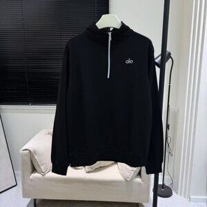 Alo Black Half-Zip Standing Collar Sweatshirt, Fitness and Sports Top