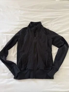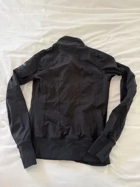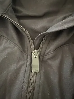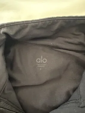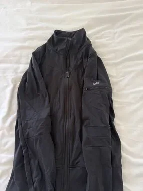 Alo Contour full zip jacket. Black. Size S. GUC, zipper has some superficial signs of wear but works fine. Zip front, two zip pockets, and zip pocket at arm under Alo logo.