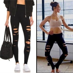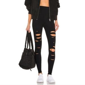 Alo Dark Gray High-Waist Ripped Warrior Legging / small