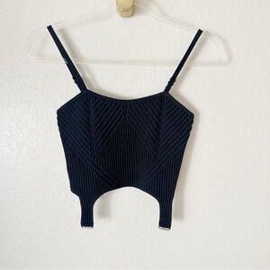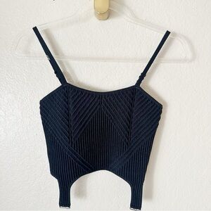 Crafted from soft, structured, ribbed-knit fabric inspired by the nuanced texture of denim, this tank features a cropped fit, dainty adjustable shoulder straps, and a garter strap detail for a touch of allure. Trust us, you’re going to want one in every shade.