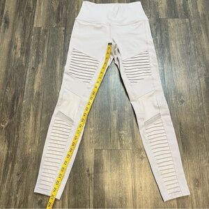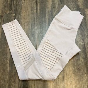 Super comfy and beautiful high waist Alo Motto leggings in light gray almost lavander color. Soft cotton spandex fabric.