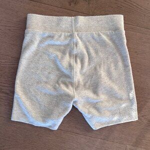 Alo High-Waist Me Time Short XXS in Oatmeal Heather. Made from Alolux—one of alo's softest fabrics—that’s brushed on both sides for an almost fuzzy finish. The biker-style silhouette is complete with a wide elastic waistband and hems that hit at the upper thigh. Never worn - tags and labels cut out for a photo shoot.