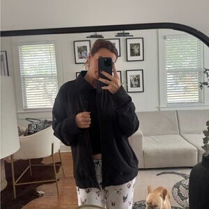 Alo windbreaker/ rain jacket men’s XL but I wear it with leggings.